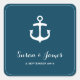 A modern Nautical theme sticker featuring an anchor illustration on a navy background. Perfect for Nautical Wedding Favours.
