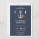 Navy blue and white elegant nautical beach destination monogrammed wedding invitation featuring a ship anchor and a starfish. ++++++++ Easy to personalise with your wedding details, names, and couple's monogram.
