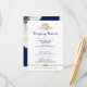 Nautical Boutique Co.'s navy and white wedding details enclosure card features modern script and traditional block typography in navy blue on a simple white background. It's accented with a nautical rope tied in an infinity knot and ships wheel set in white and blue anemones. #Nautical #Wedding #CoastalWedding #Anemone