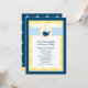 This cute nautical baby shower invitation features a friendly navy whale with heart-shaped water splashes, set against a cheerful navy blue and yellow polka dot and stripe design. The bright, playful colour combination is perfect for a baby boy celebration. A coordinating whale pattern dresses up the back of the card. All wording is fully customisable for your event.
