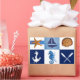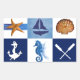 Original watercolor painted design by Sandra Gale, featuring blocks of nautical themed drawings like star fish, anchor, ship, turtle, and shells. Great design for the summer, beach homes, bungalows or for anyone who loves the beach, ocean or fish.