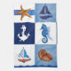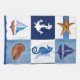 Original watercolor painted design by Sandra Gale, featuring blocks of nautical themed drawings like star fish, anchor, ship, turtle, and shells. Great design for the summer, beach homes, bungalows or for anyone who loves the beach, ocean or fish.