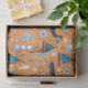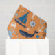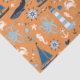 Ocean and nautical theme design features whales, navy blue sailboats, octopus, crabs, seahorses, ships wheels, anchors, lighthouses, and more on a colourful orange background. This ocean theme design can be found on pillows, pillow poufs, fleece blankets, cheese boards, serving trays, kitchen towels, bathroom sets, gift boxes and bags, paper plates and napkins, ribbon, tissue paper, candy tins, boxes of chocolates, flasks, playing cards, stickers, and so many other items!