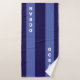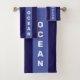 Elegant nautical ocean text on navy blue and ocean blue striped Towel Set. Text can be personalised.