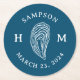 Nautical Oyster Shell Monogram with Name Date Round Paper Coaster