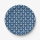 Nautical paper plates | boat anchor pattern print. Cute party supplies. Disposable dinner party supplies printed for fun birthday, wedding, new years eve, bridal shower, baby shower, bachelorette etc. Strong quality suitable for adults and children. Maitime theme with ship anchors. Change the quantity to get the cheapest price per plate. Custom personalised text and colour. Navy blue and white sailing design.