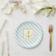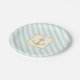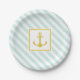 Nautical Pastel Blue Stripes Golden Anchor Paper Plate