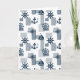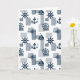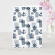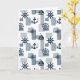 Seamless nautical themed design with sailing boat, compass, anchor and sailing wheel decoration on blue and white geometrical background