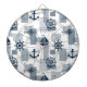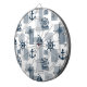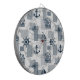 Seamless nautical themed design with sailing boat, compass, anchor and sailing wheel decoration on blue and white geometrical background