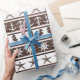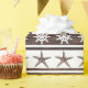 Seamless, repeating white pattern with seahorse, anchor, ship's wheel and starfish on wood photo background.