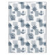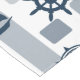 Seamless nautical themed design with sailing boat, compass, anchor and sailing wheel decoration on blue and white geometrical background