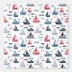 Nautical Pattern with Sailboats and Fish Wallpaper