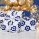 Nautical pattern with blue ships wheel pattern that lets you wrap presents in masculine style. I designed this as gift wrap paper in a boating theme that works for anyone who loves boats, sailing, or nautical designs.