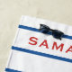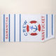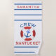 Nautical personalised Nantucket beach towel. Red and blue nautical anchor and buoy design read Crew Nantucket, easy to personalise with their name.
