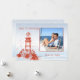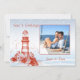 Nautical Photo Christmas Card with Red Watercolor Lighthouse. Use your favourite vacation photo.
