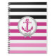 Nautical pink anchor/Navy knot/black stripe Notebook