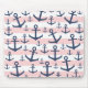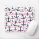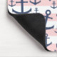 Nautical pink stripe navy blue anchor pattern mouse mat