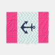 Nautical Pink White Mint Chevron Anchor Pattern Fleece Blanket