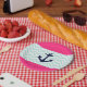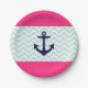 Nautical Pink White Mint Chevron Anchor Pattern Paper Plate