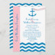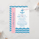 This nautical post wedding reception invitation is featured in pink and blue. The design features an anchor being tossed into a chevron or zigzag sea. You can customise the design with the name of the bride and groom, your marriage details and the details of your post marriage wedding reception to make a great nautical theme invite. Copyright henishouseofpaper