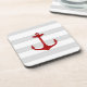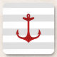 Nautical Red Anchor Grey White Stripes Coaster