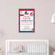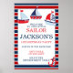 Cute boy's nautical theme 1st birthday party (or any birthday) poster welcome sign with three sail boats, an anchor on a white frame and navy and red striped background. Personalise the text yourself when you order. Fun decoration for nautical theme birthday. Change the text to any event or occasion. This sign will easily convert to the 20 x 20 or 24 x 36 inch sizes.