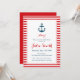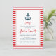 Modern Baby Shower Invitation featuring a red striped background and anchor illustration.