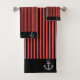 Nautical Red Black Stripe Anchor Banded Bath Towel Set
