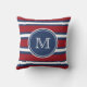 Nautical Red Blue Stripe Monogram Throw Pillow