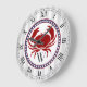A simple nautical red crab design with a sliver grey / grey striped background.A Great customisable clock for summer time or any marine themed place. With the option to personalise a monogram, could be the family initial or your own.