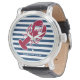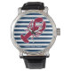 Nautical Red Lobster Monogram Blue White Stripe Watch