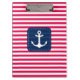 Nautical Red White Stripes Navy Blue Banner Anchor Clipboard