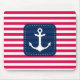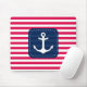 Nautical Red White Stripes Navy Blue Banner Anchor Mouse Mat