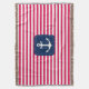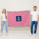 Trendy nautical design of red & white stripes pattern with navy blue banner in the middle with white anchor.