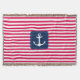 Nautical Red White Stripes Navy Blue Banner Anchor Throw Blanket