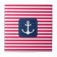 Nautical Red White Stripes Navy Blue Banner Anchor Tile