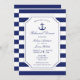 This coastal inspired nautical wedding rehearsal dinner invitation card features a stylish navy blue anchor with rope and a blue and white striped background. Personalise the text for your own rehearsal dinner details.