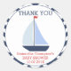 This nautical thank you baby shower sticker features a cute sail boat on a white background with a navy blue and white chevron border. This baby shower sticker is ideal for a nautical theme baby shower and same design invitation is also available at the store. It's ready to be personalised.