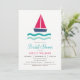Nautical Sailboat bridal shower invitation. Invite features turquoise and pink sailboat and waves