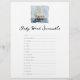 There's a sweet little baby on the way, so it's time for some Baby Shower games! Here, the Baby Word Scramble game has the guests decoding 15 baby items. The design features a watercolor sailboat paired with chic typography. Original art and design by Annie Montgomery Design.