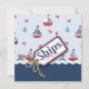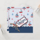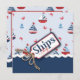 Nautical colours in classic red, white, and blue sailboats with anchor and crabs and a novelty 3D-look "ships ahoy" tag with twine.