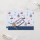 Nautical colours in classic red, white, and blue sailboats with anchor and crabs and a novelty 3D-look "ships ahoy" tag with twine.