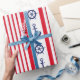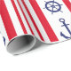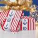 Nautical Sailing Red White Blue Stripe Boat Anchor Wrapping Paper