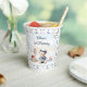 Cute Little Sailor paper cups featuring an adorable teddy bear in a sailor outfit, boat seagull and lighthouse. Watercolor anchor pattern background. Easily personalise the text. - Kate Eden Art