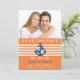 This save the date announcement photo card features a blue anchor on orange stripes. Fresh and modern with a place for your favourite couple's photo on the top. Easily customised with your wedding information. ::ENVELOPES INCLUDED::
