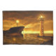 Nautical scene with lighthouse at an orange sky sunset. frontiernow.com