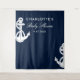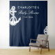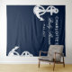 The modern nautical navy blue anchor Script Baby Shower backdrop tapestry that you can easily customise by clicking the "Personalise" button. Our elegant and minimalist boy baby shower tapestry features a boat anchor and modern typography on a navy blue background.