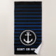 Nautical Sea Anchor Your Name or Boat Navy & Black Beach Towel