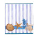 Original watercolor painted design by Sandra Gale, featuring star fish, sea horse, turtle and shells on a background of vertical translucent blue stripes. Great design for the summer, beach homes, bungalows or for anyone who loves the beach, ocean or fish.