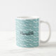 Enjoy seaside style in the home or beach hut, with this ocean wave patterned mug. It makes a stylish accessory for a nautical themed room, with fresh light blue and white colours. Personalise with your own name(s), boat name, summerhouse name or other text. An elegant and pretty decorative accessory and gift.